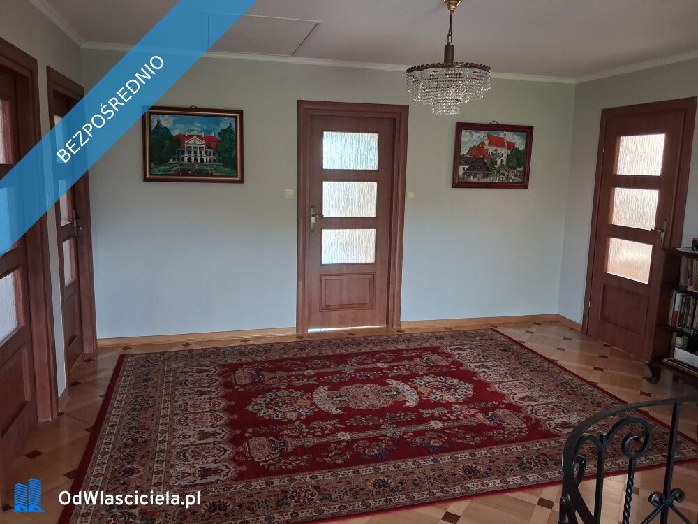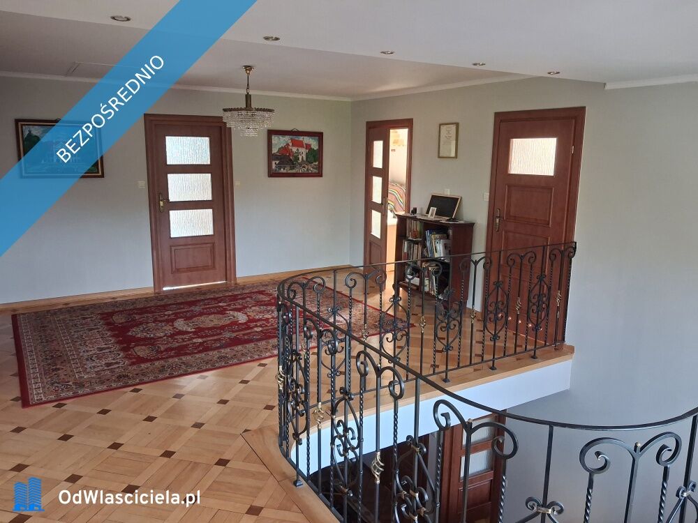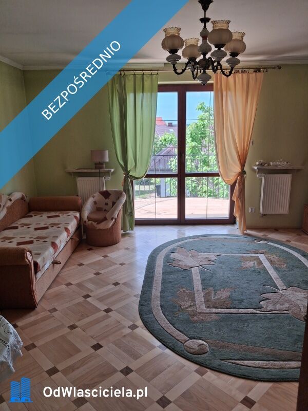 Przestronny 180 m2 dom, z działką o powierzchni 2100 m2, otoczony kostką, wybudowany w 2005 roku. Na parterze, połączony z kuchnią słoneczny salon z kominkiem i wyjściem na ogródek z oczkiem wodnym oraz pokój/gabinet i łazienka. Na piętrze duży, słoneczny pokój z balkonem, 3 mniejsze pokoje i przestronna łazienka. Szeroka klatka schodowa nadaje wnętrzu reprezentacyjny charakter. Parkiety pałacowe, okna drewniane, kanalizacja. Ogrzewanie gazowe z sieci i instalacja fotowoltaiczna gwarantują niskie koszty utrzymania. Działka w całości ogrodzona i w pełni zagospodarowana. Ogród, sad, miejsce na grill. Przed domem stylowa fontanna. Dodatkowo murowany garaż z budynkiem gospodarczym.Nieruchomość łączy w sobie 20-letnią historię z tradycjonalistycznymi elementami architektury i nowoczesnym komfortem. Oferuje przestrzeń do pracy, odpoczynku i pasji. Doskonała propozycja dla tych, którzy pragną poczucia przestrzeni, ciesząc się przyjaznym otoczeniem.